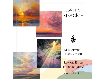 Přijďte si namalovat západ slunce s jeho proměnlivou hrou barev. Naučíte se zachytit jemné přechody oblohy i atmosféru klidného večera. Všechny naše kurzy jsou vhodné i pro...