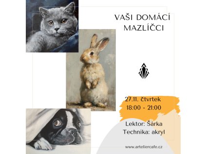 Máte doma chlupatého, opeřeného nebo ušatého kamaráda? Přijďte si ho namalovat! Stačí fotka vašeho mazlíčka a chuť tvořit. Všechny naše kurzy jsou vhodné i pro úplné...