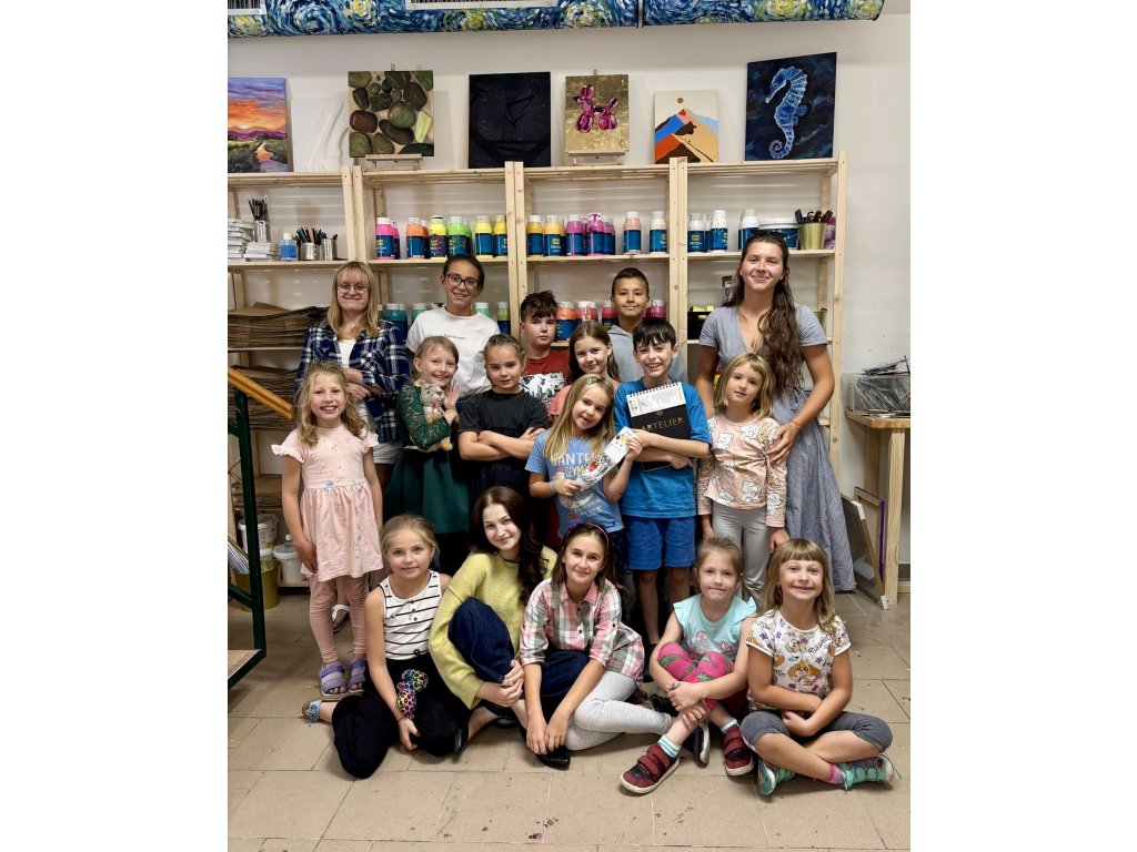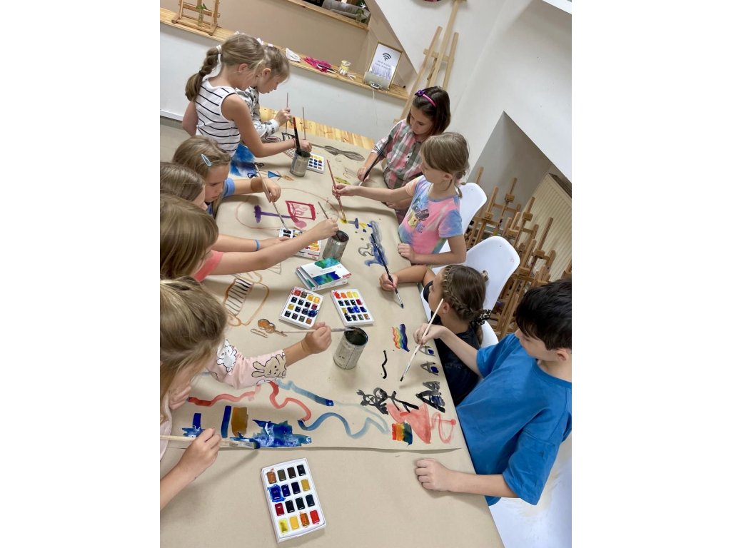 Děti, které chtějí přijít jednorázově si namalují vlastní obraz akrylem na plátno, který si vezmou sebou domů.