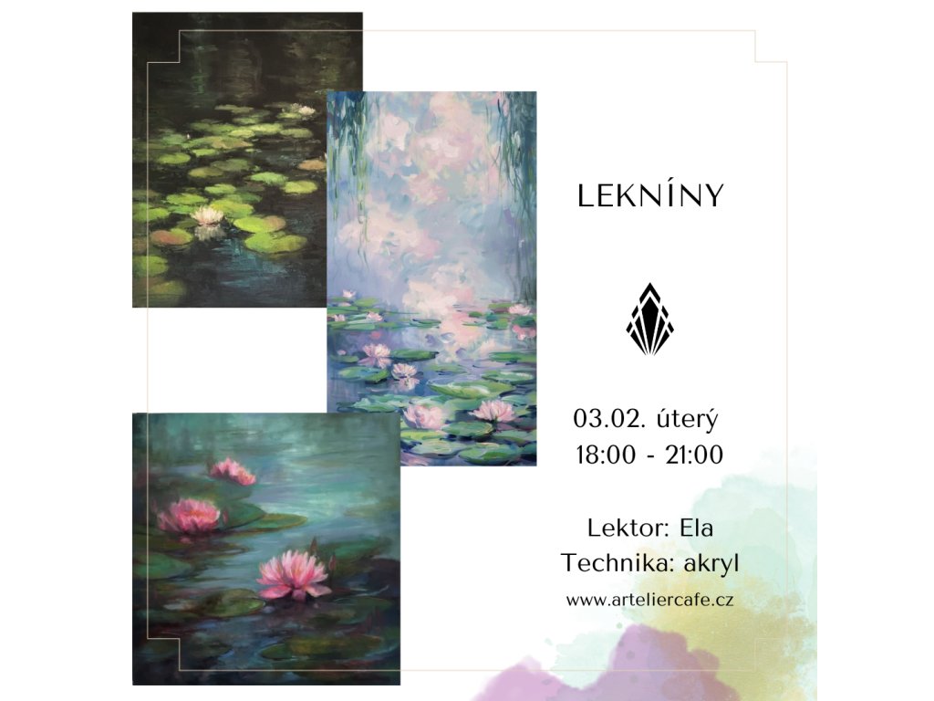Zachyťte klid na hladině a nechte se zavést do tichého světa leknínů odrážejících se na vodní hladině. Naučíte se vrstvit barvy, zachytit hloubku vody i jemnost květů a vytvořit harmonickou atmosféru.