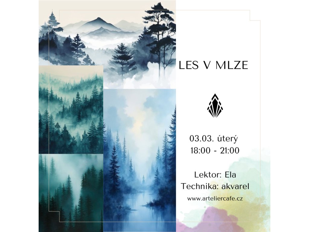 Zahloubíme se do tichého lesa zahaleného jemnou mlhou, kde se stromy postupně ztrácejí v dálce. Akvarel nám umožní vytvořit měkké vrstvy, průhlednost a atmosféru klidu, která lesu dodá snový charakter.