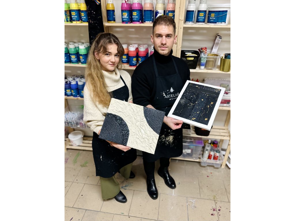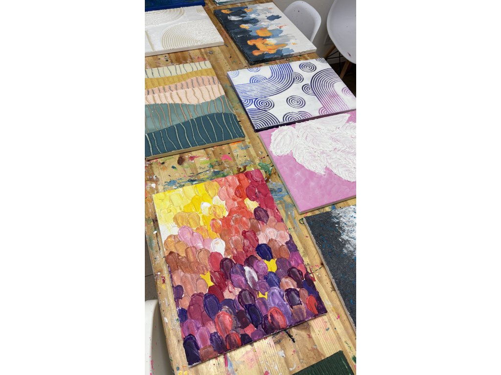 Na našich kurzech nejde o dokonalost, ale o radost z tvorby, objevování a chvíli, která patří jen vám.Pusťte se do tvorby s strukturovací pastou, kde se barvy a textury spojí do jedinečného freestyle obrazu plného energie a kreativity.