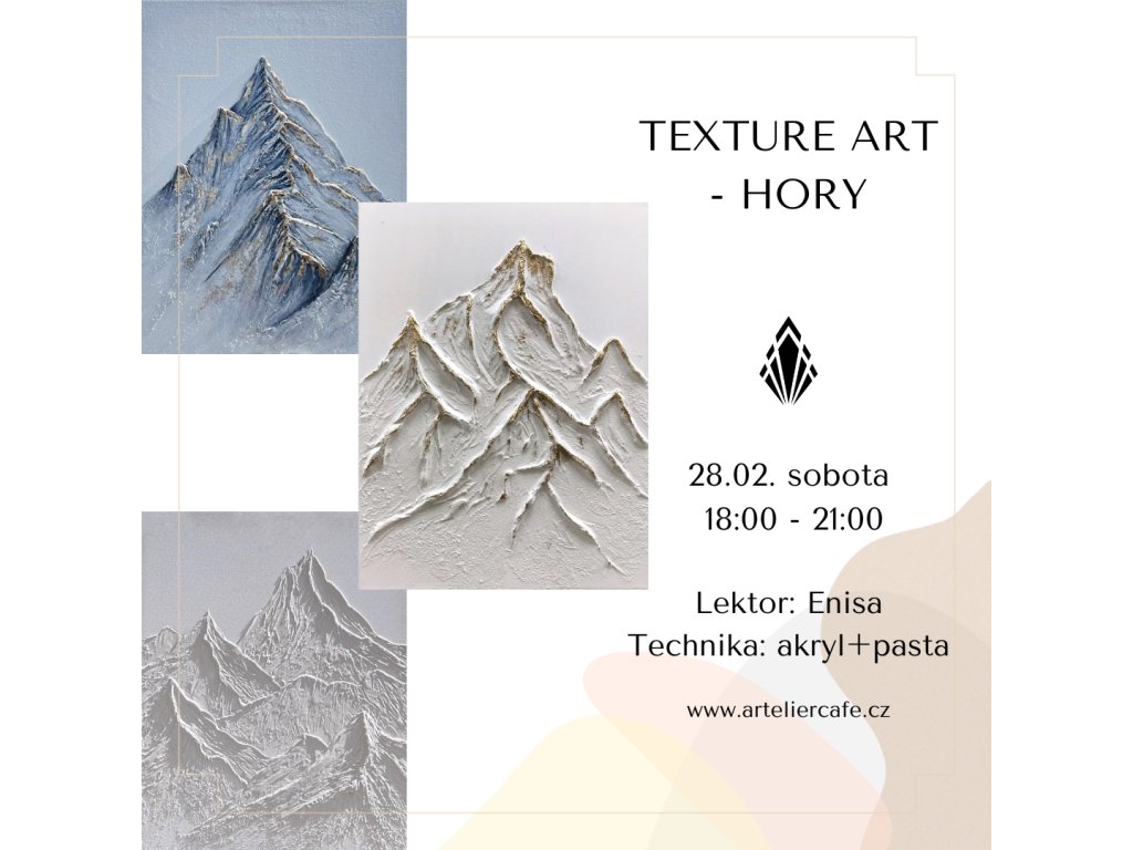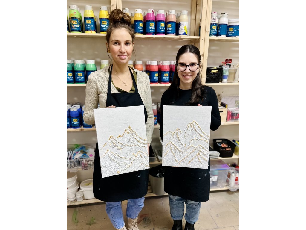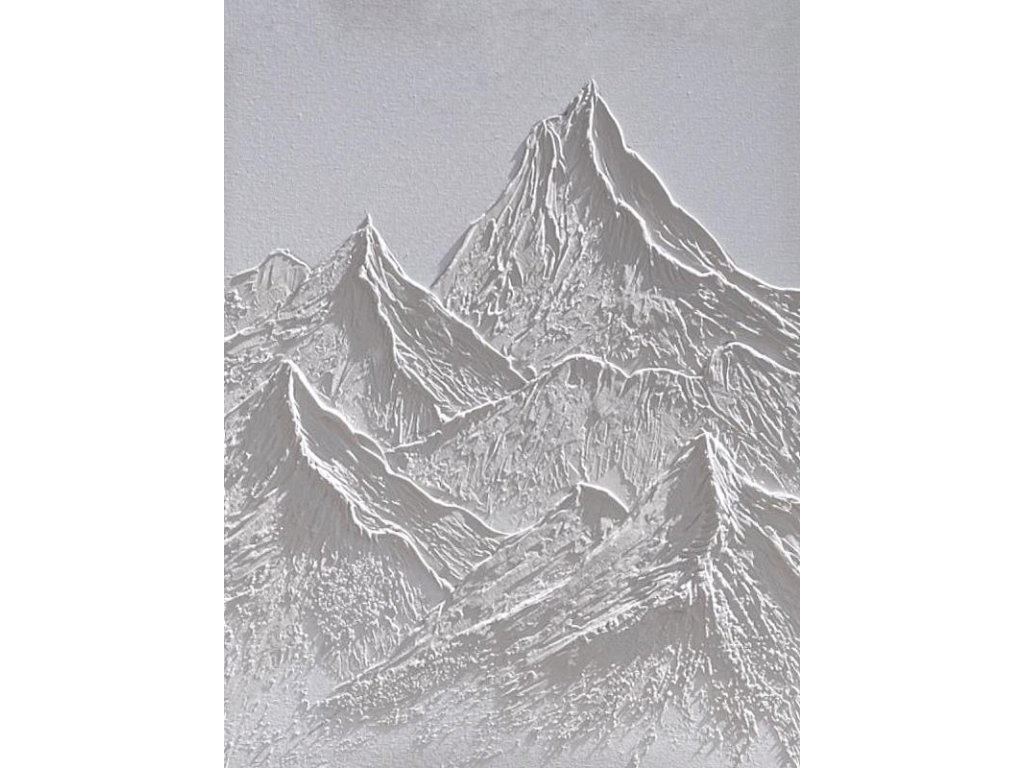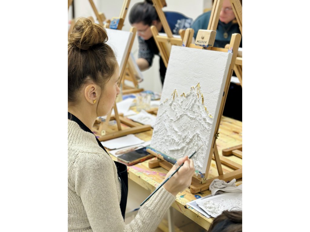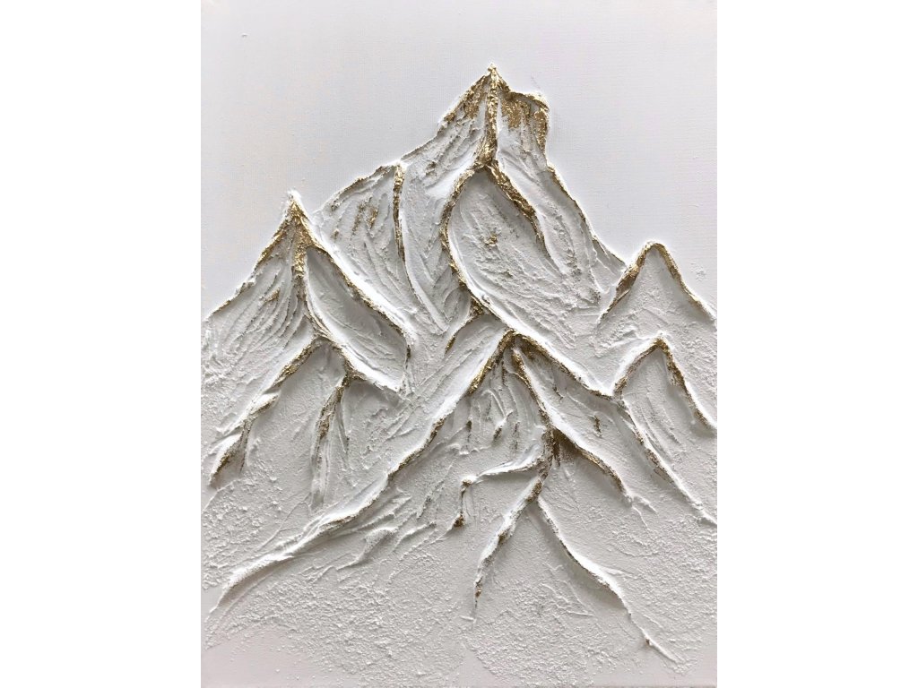 Pusťte se do tvorby se strukturovací pastou, kde se barvy a tvary vrcholků hor spojí do jedinečného 3D texturovaného obrazu plného struktury a kreativity.
