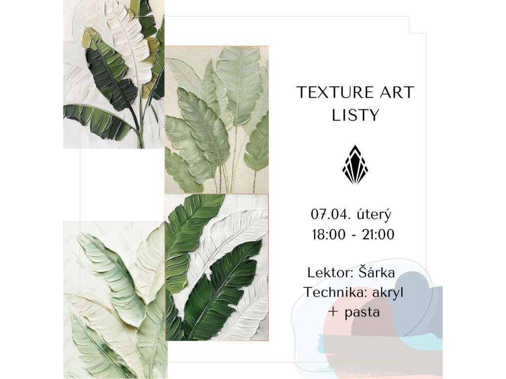 Na našich kurzech nejde o dokonalost, ale o radost z tvorby, objevování a chvíli, která patří jen vám. V tomto kurzu, inspirovaném tvary a strukturami listů, budete tvořit reliéfní obrazy, které propojují umění, přírodu a klidnou koncentraci.
