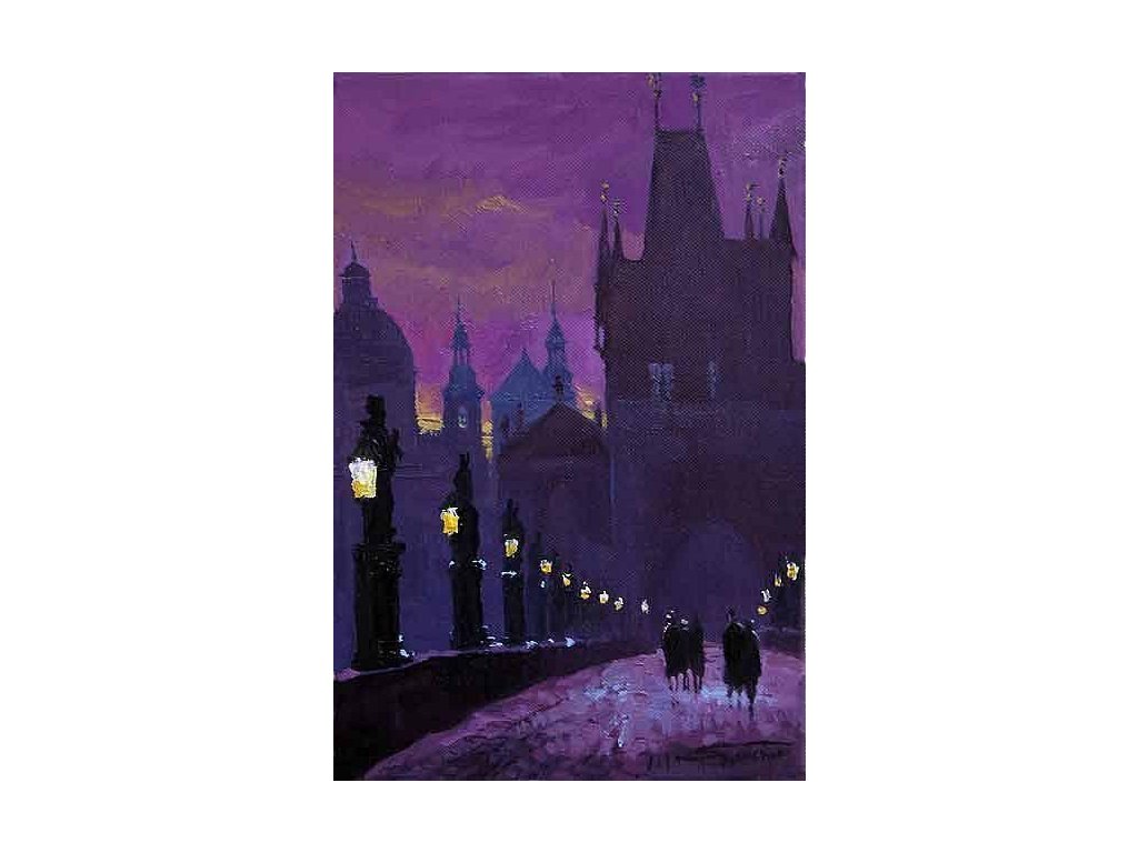 Na kurzu se budeme věnovat malbě ikonické pražské scenérie – Karlova mostu po setmění. Ukážeme si, jak vystihnout náladu večerní Prahy pomocí barev, světla a stínu.